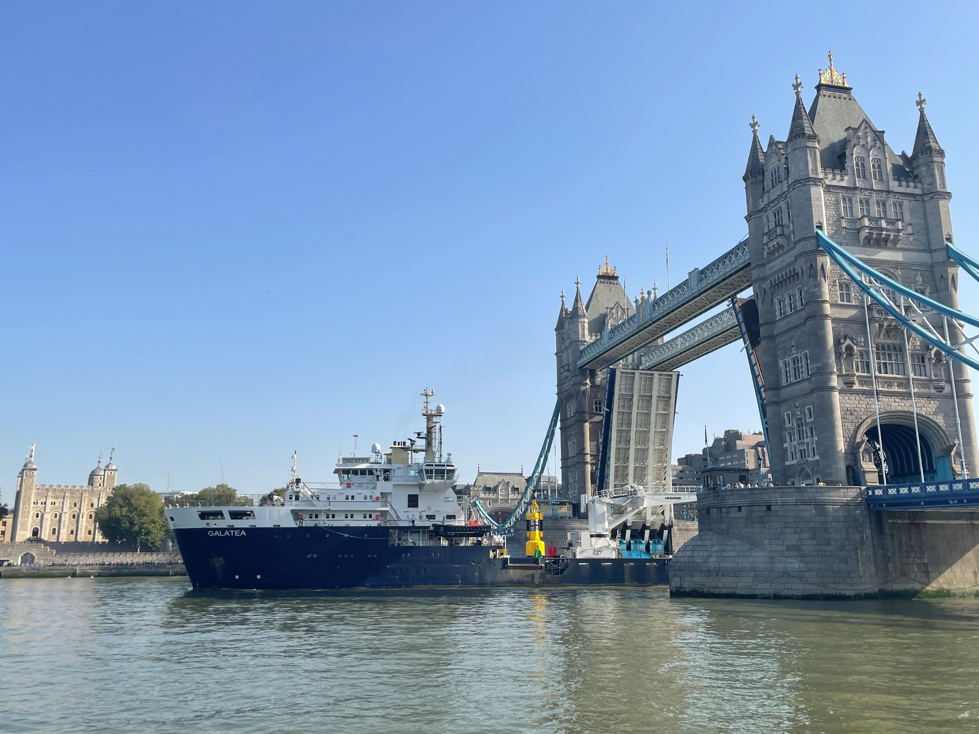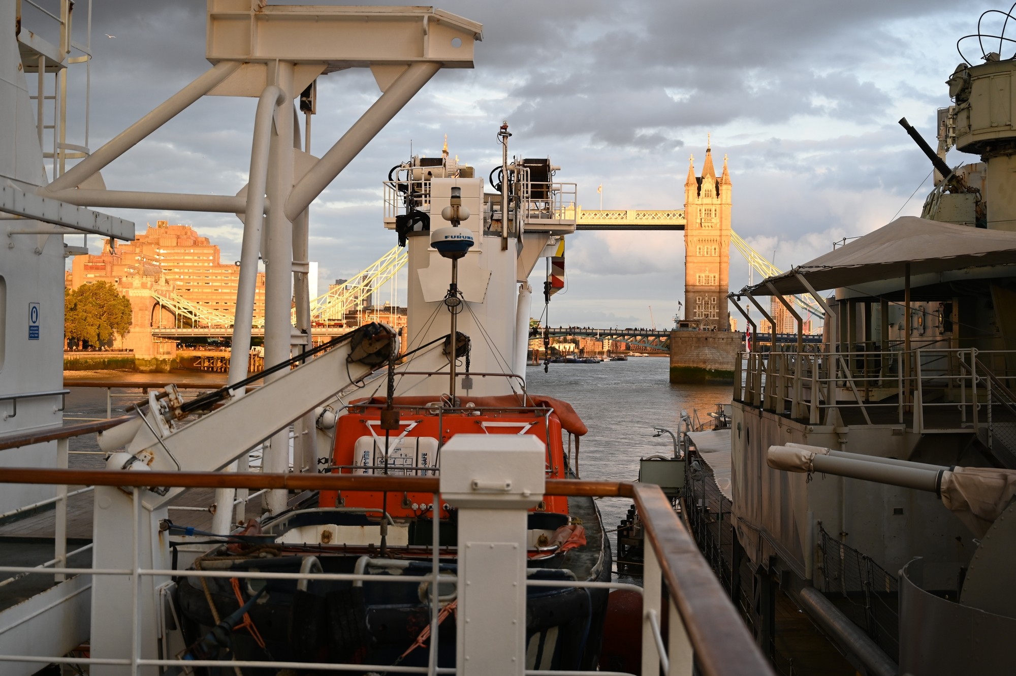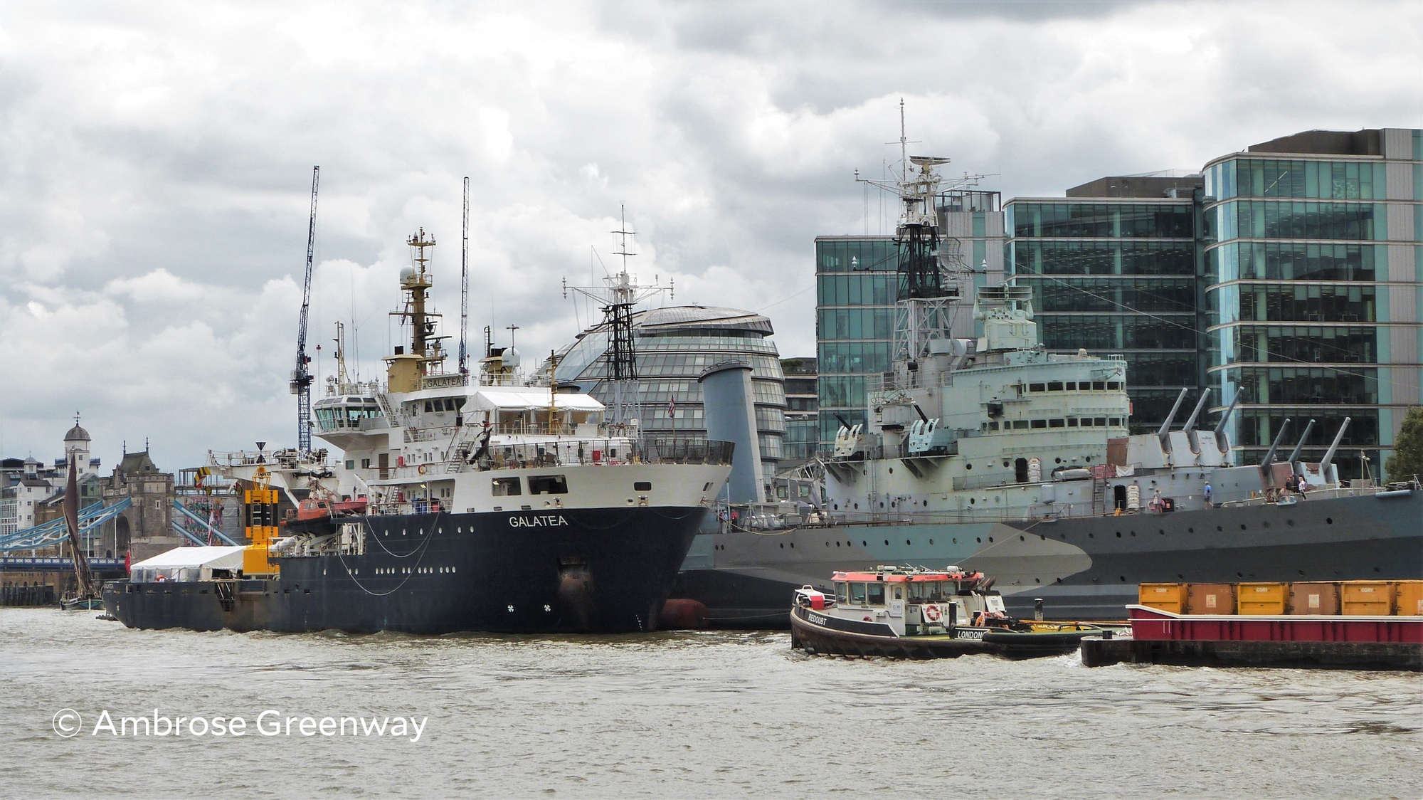 Trinity House moored THV Galatea alongside HMS Belfast in the Pool of London, offering a rare opportunity for visitors to look inside this fascinating ship.