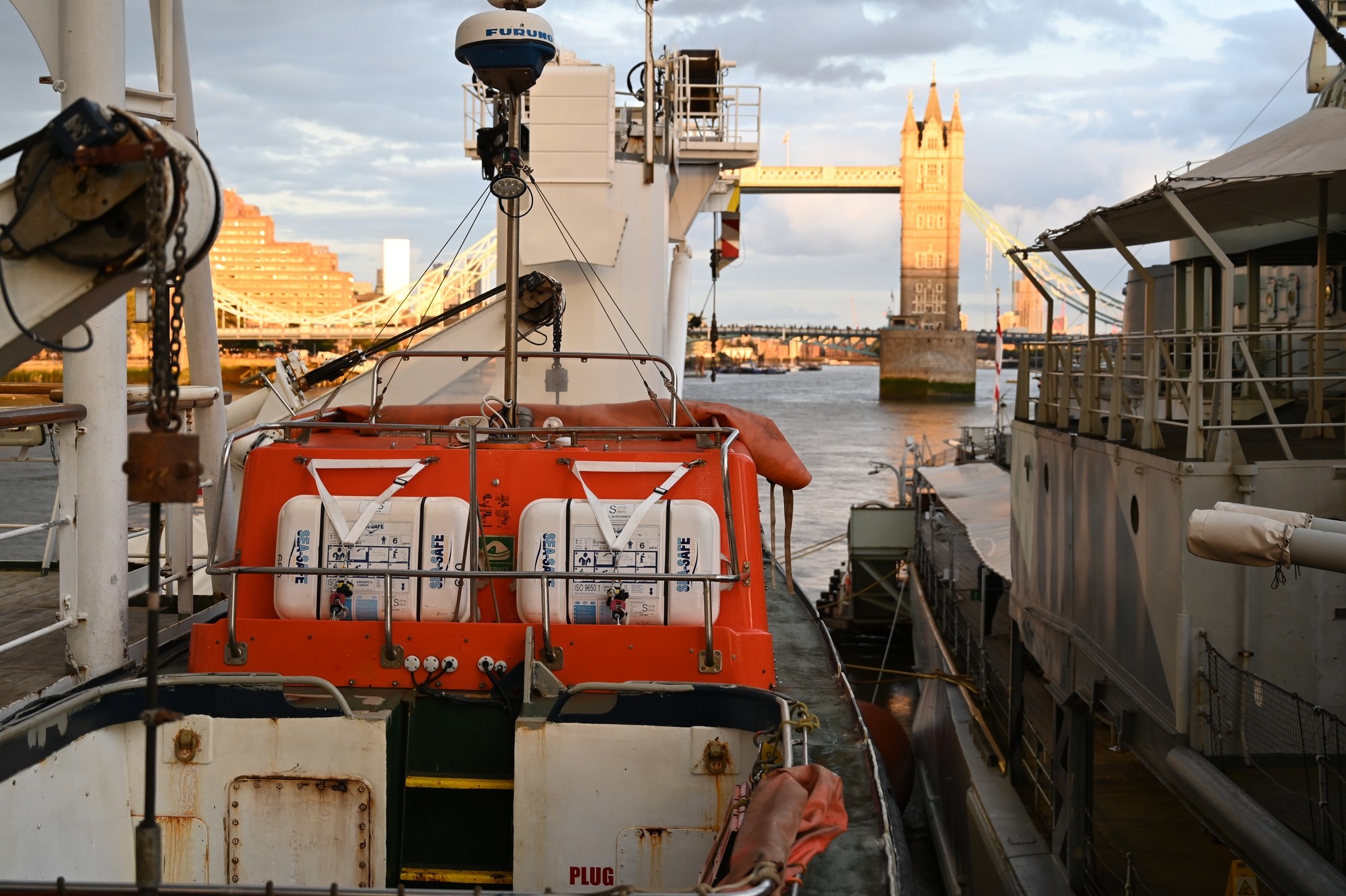 Trinity House moored THV Galatea alongside HMS Belfast in the Pool of London, offering a rare opportunity for visitors to look inside this fascinating ship.